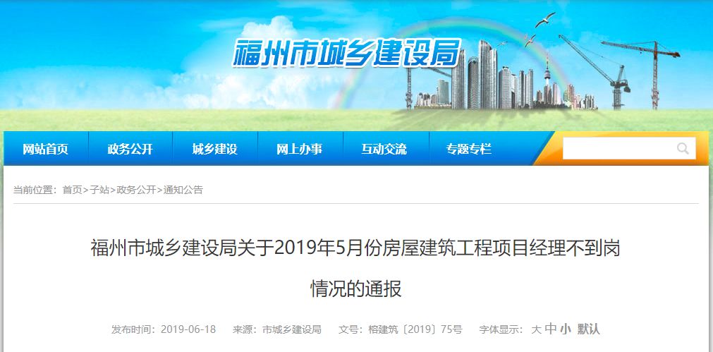 目前為止,福州市建設局發布了4份通報,共有74名項目經理到崗履職情況不符要求被通報: