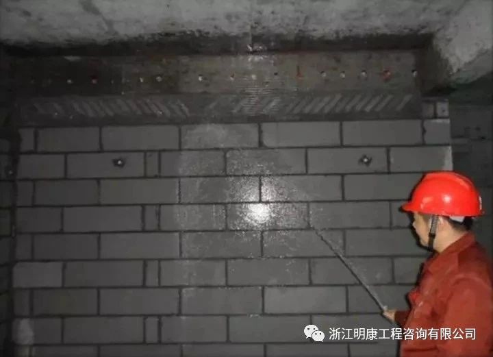 一般在抹灰前一天,用水管或噴壺順墻自上而下澆水濕潤。不同的墻體,不同的環境需要不同的澆水量。澆水要分次進行,最終以墻體既濕潤又不泌水為宜。