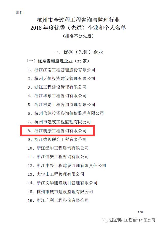 公司榮譽 | 明康咨詢榮獲杭州市全過程工程咨詢與監理行業2018年度優秀咨詢監理企業稱號發布日期:2019-08-21