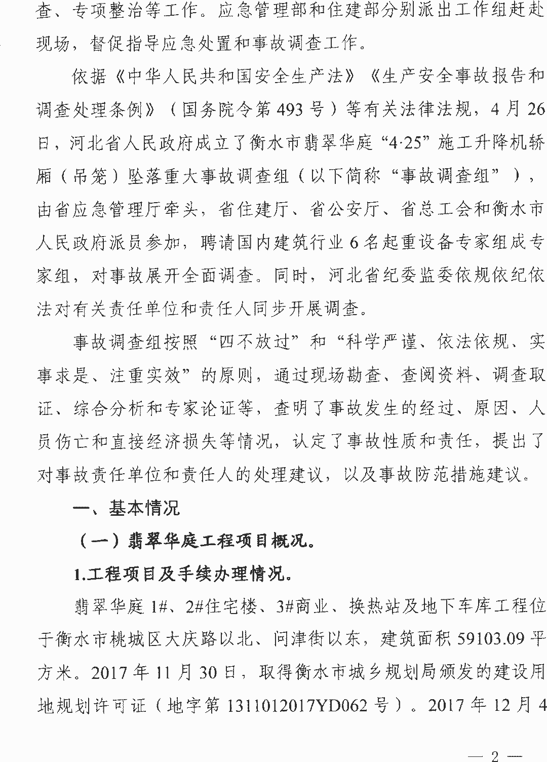 4月25日早晨八點,河北衡水市翡翠華庭工地施工升降梯折斷,造成施工人員11死2重傷。