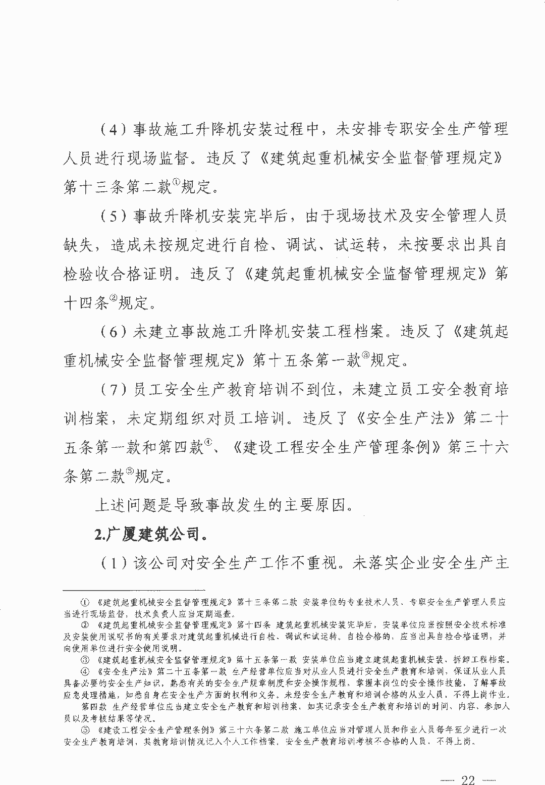 施工升降機安裝單位:吊銷資質,150萬元罰款。監理單位:降低資質,110萬元罰款,法人予以29875元罰款。建設單位:110萬元罰款,法人予以177791元罰款。