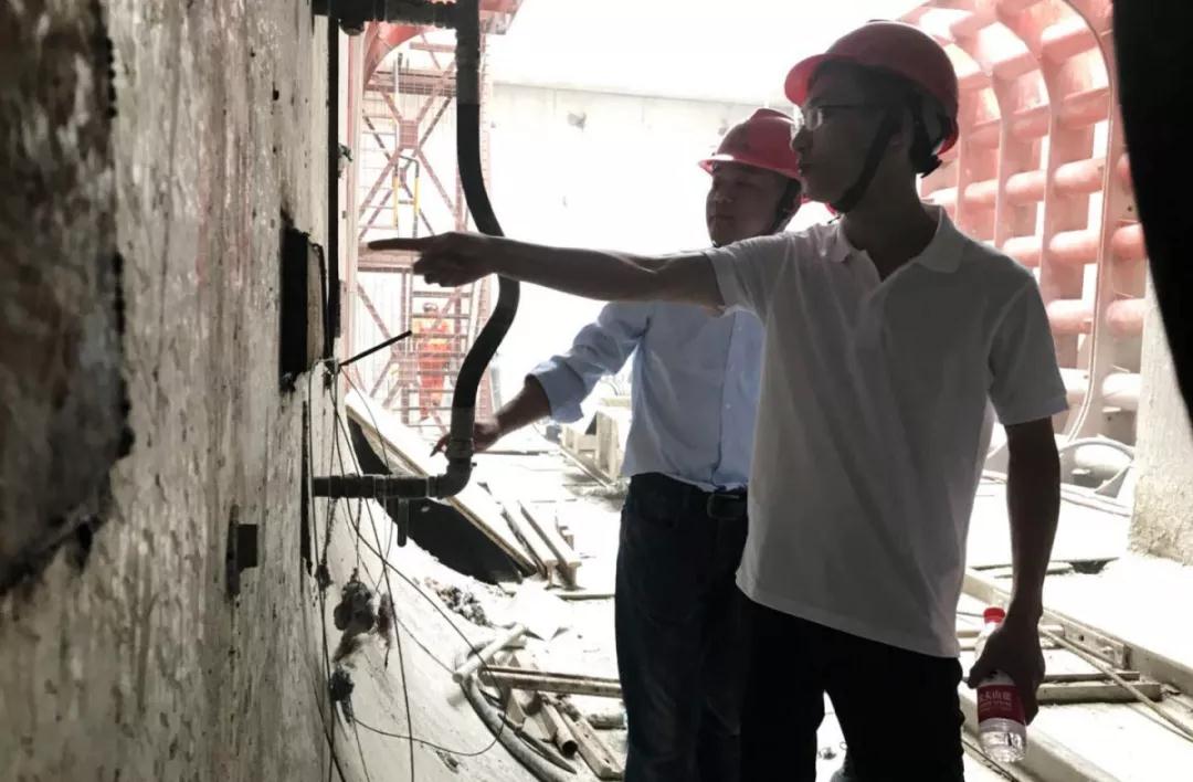 徐總與項目負責人張國宏一起下到現場,對現場的安全文明進行查看并指出改進的地方,項目負責人張國宏向徐總匯報了項目中遇到的難點及項目部如何妥善地處理并解決困難。