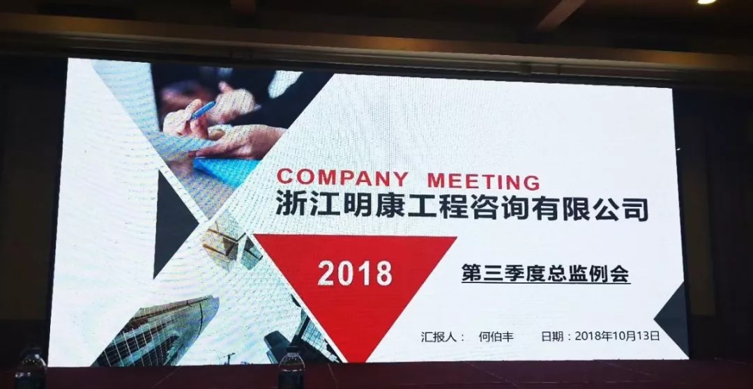 2018年10月13日下午13點30分,浙江明康工程咨詢有限公司第三季度總監例會在杭州第一世界大酒店順利召開。