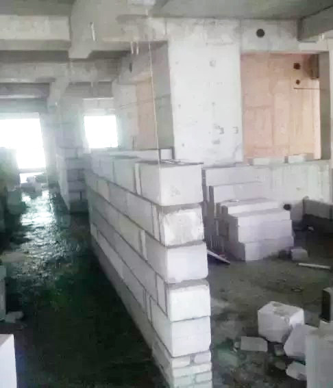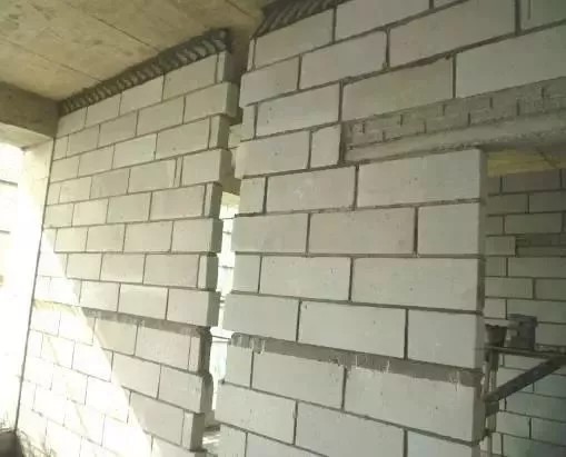 砌塊墻體的轉角處和交接處應同時砌筑,嚴禁無可靠措施的內外墻分砌施工;對不能同時砌筑而且必須留置的臨時間斷處應砌成斜槎,斜槎水平投影長度不得小于高度的 2/3。臨時間斷處補砌時應將接槎處灰漿及雜物清理干凈,澆水濕潤,并用砂漿填實保持灰縫順直。